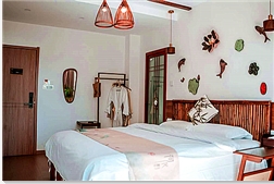 住宿(元/間)贈送潛水票1張 房型 平日價 海天映月海景家庭雙臥套房 1666 竹影相伴海景家庭雙臥套房 1266 霞光落日雙臥家庭套房 1166 云開月朗海景大床房 966 枕上詩書大炕房 399 游客評價:蘇州dazmhsd:民宿就在海邊、環(huán)境很棒、風景勝畫、空氣清甜。房間很干凈,房內的設施齊全,窗戶對著大海,晚上夜景很美。服務態(tài)度很好,美食令人食欲大增,下次還再來。