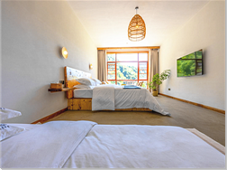 民宿配套硬件到位,客房配有獨立衛(wèi)生間、電視、空調(diào)、無線WiFi,中央熱水器,24小時供應(yīng)熱水,床單被套一客一換。一次可接待40余人住宿和用餐,集休閑、度假、觀景、娛樂為一體的綜合型民宿酒店。