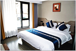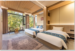 客房配有獨(dú)立衛(wèi)生間、電視、空調(diào)、無線WiFi,中央熱水器,24小時(shí)供應(yīng)熱水,床單被套一客一換。一次可接待25-30人住宿和用餐。